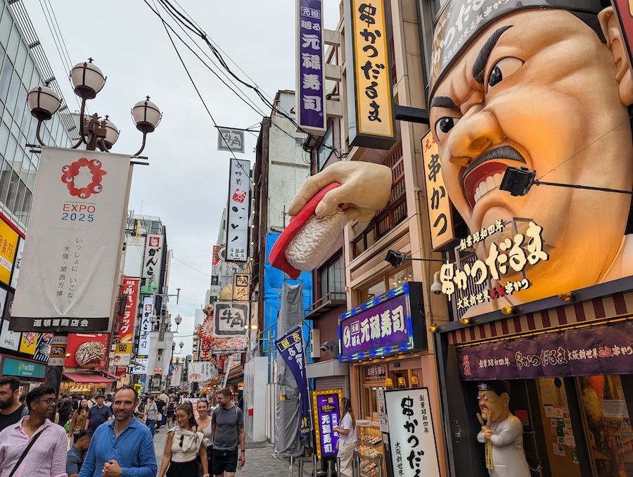 After a few great days in Kyoto it was time to move on and we caught an express train to Osaka, meaning our ride was under 30 minutes. The only drawback was that the express train was packed, so we had to stand all the way. At least since we only travel with small carry-on suitcases, it made it easy to keep track of on the train.