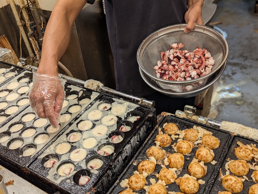That night we returned to Dotonbori where we wandered, eating different street foods such as takoyaki (small yummy squid balls), cheese coin, and wagyu beef skewers among other treats showing that Osaka truly lives up to its name as “Japan’s kitchen.”