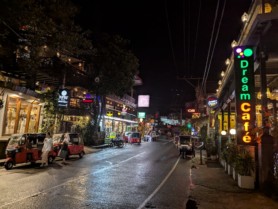 That evening we asked the owner if he could drive us back into town for dinner. On the way there the sky suddenly opened up and rain started pouring down so heavily that it became difficult to even see the road. We ended up standing under an awning in town trying to stay dry before eventually deciding to just run across the street back to Chills, since we already knew the food was good.