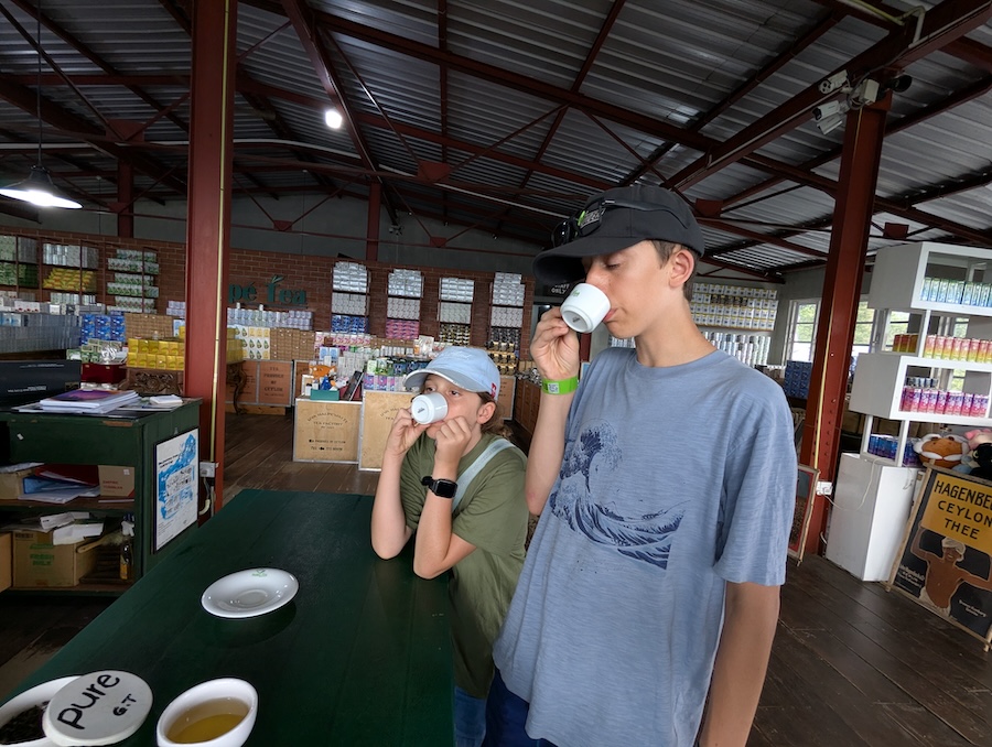 Afterwards we returned inside the factory for a tea tasting where we sampled several different varieties, with this being the first time Xander and Eloise had ever sampled tea.