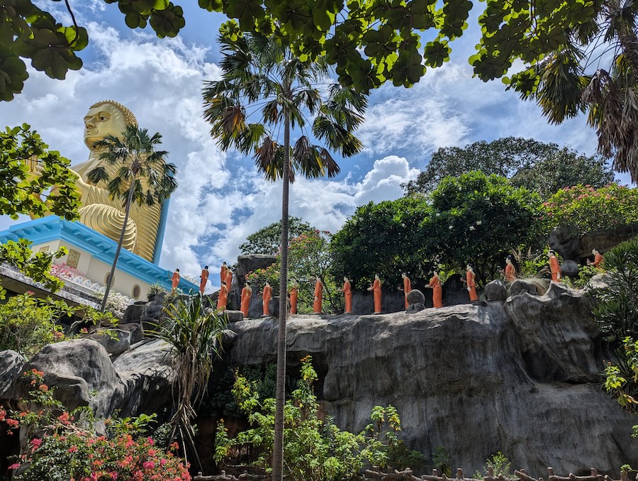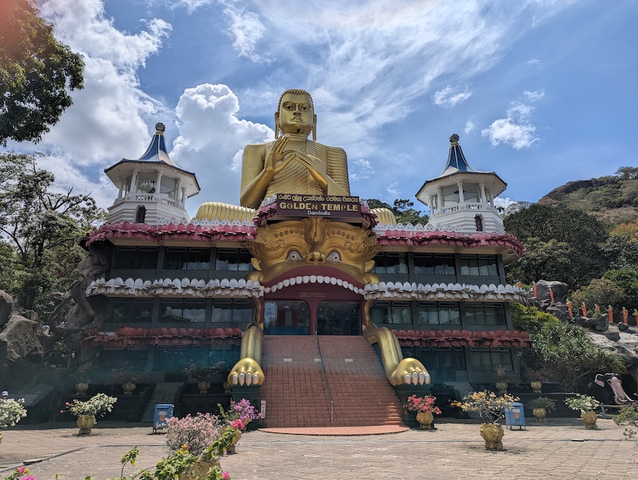 Our first stop of the day came about two hours later at the impressive Dambulla Cave Temple, also known as the Golden Temple of Dambulla. The temple complex sits high on a large rock formation and reaching it requires climbing roughly 300 steps. Unfortunately for us, we were doing this in the middle of the day when the heat was at its strongest. After making the climb and reusing the sarongs we had purchased the previous day in Kandy, we entered the caves and explored the temple complex. Inside are several cave temples filled with statues and murals of the Buddha, with over 150 statues spread across five caves that date back more than 2,000 years. After spending some time exploring and taking in the impressive artwork and statues, we made our way back down the hill, passing plenty of monkeys along the path before finally reaching our driver waiting for us at the bottom.