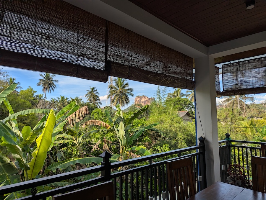 After a quick lunch stop we continued the drive towards Sigiriya and arrived at our originally booked accommodation. As usual the hotel staff grabbed our bags and started taking them towards the room, but when they reached the door they suddenly seemed confused. There were shoes sitting outside the room and it quickly became clear that something wasn’t quite right. They tried to show us a different room but that one only had two beds instead of the three we had booked. After a bit of discussion they even attempted to offer a larger room, but again it only had two beds. In the end we decided to cancel the booking entirely. We called our driver back and simply asked him to take us to another hotel so we could check availability ourselves.