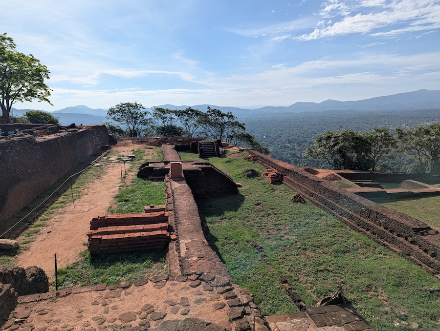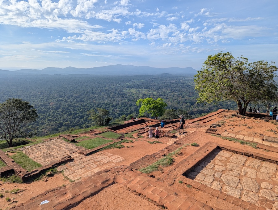 The climb to the top involves roughly 1,200 to 1,300 steps and although it’s not easy, the reward at the top makes the effort completely worthwhile. Along the way you pass impressive rock walls, narrow staircases and the famous Lion’s Gate, where two enormous stone lion paws guard the entrance to the final staircase. Once we reached the summit we were able to walk around the ruins of the ancient palace complex, including foundations, terraces and water reservoirs, all while enjoying incredible views across the surrounding jungle and countryside.
